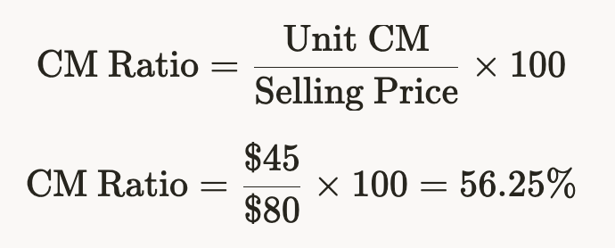 This means 56.25% of every dollar in revenue is available to cover fixed costs and generate profit. The CM ratio is especially useful when comparing products with very different price points.